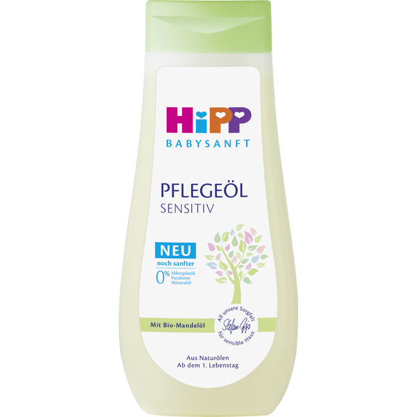 Hipp dětský olej obsahuje pouze přírodní oleje a je vhodný od 1. dne života. Je ideální