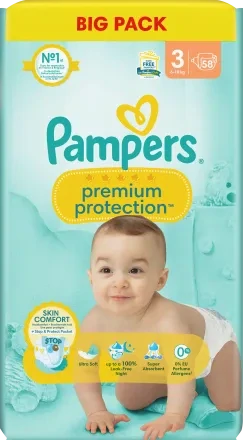 Zobrazit všechny novinkyPAMPERS premium protection, velikost 3 Midi, 6-10 kg, Jumbo Pack, 58 ks