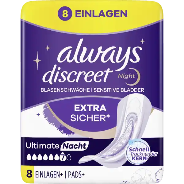 - ALWAYS hygienické inkontinentní vložky Discreet Ultimate Nacht, 8 ks