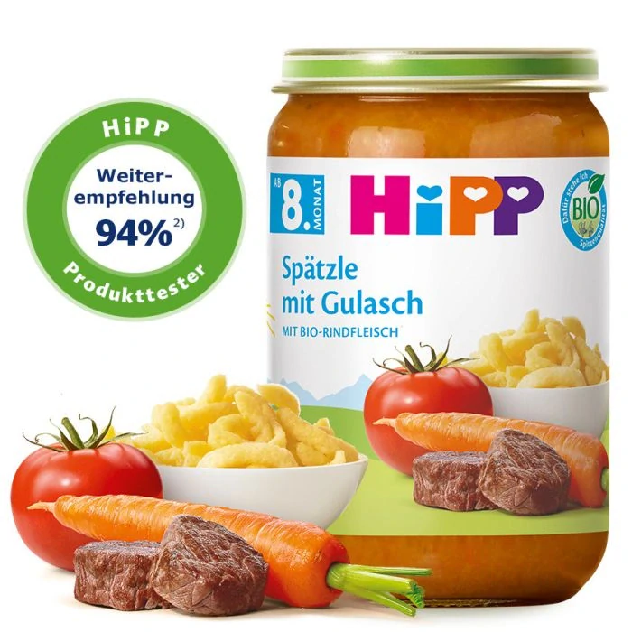 HIPP Bio Špecle s gulášem po 8. měs, 220 gSkladem54 Kč/ ks